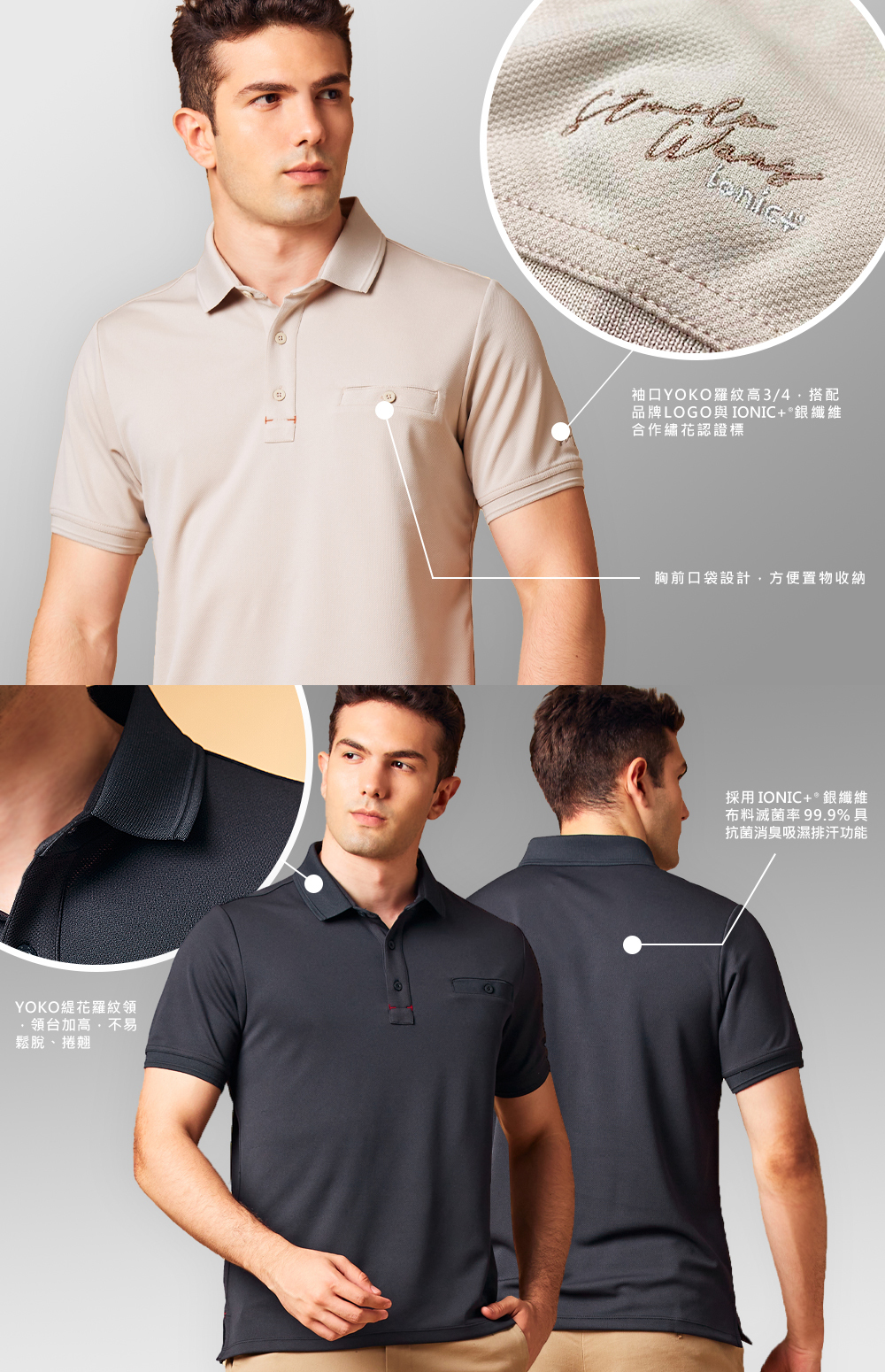 ▪ YOKO緹花羅紋領,領台加高,不易鬆脫、捲翹