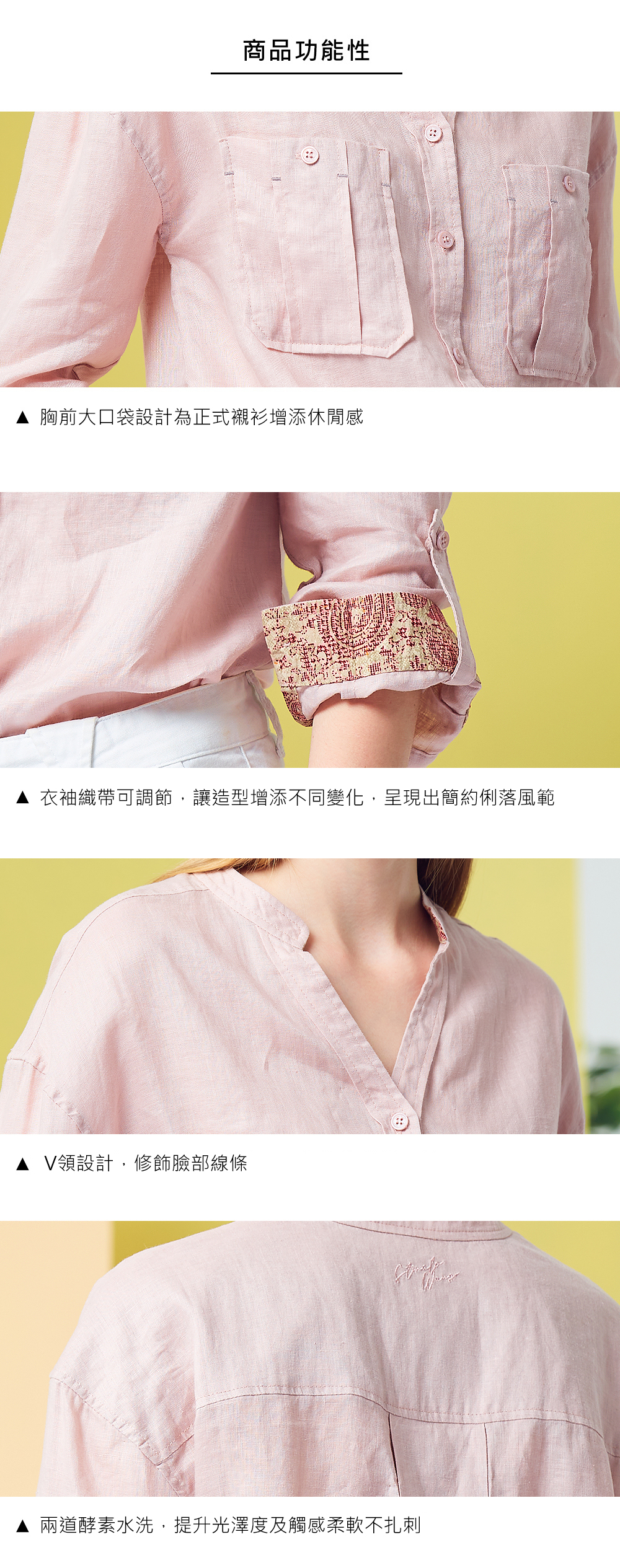 奢華100%亞麻水洗精品沁涼女上衣-2118WS-玫粉色
