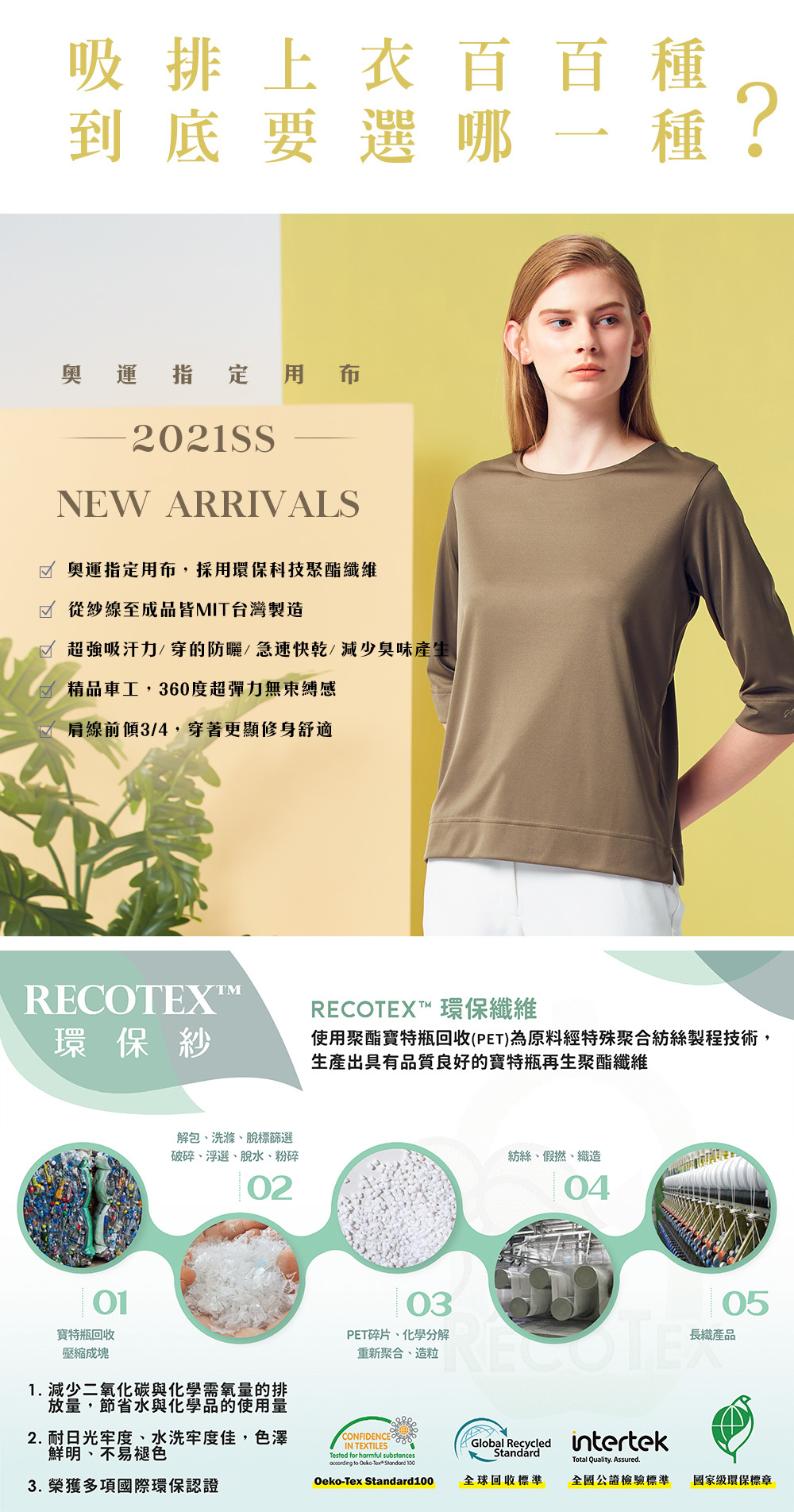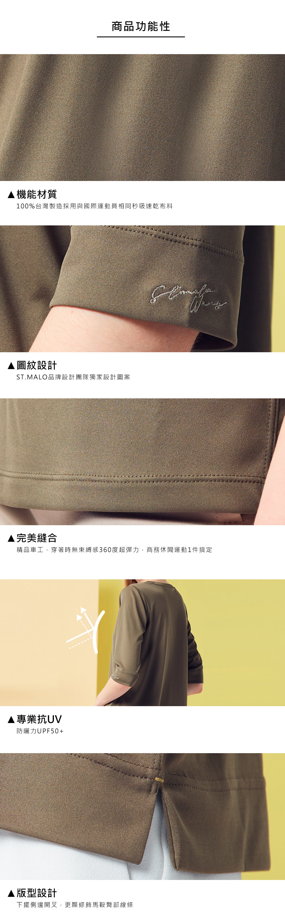 官網限定色-零著感環保紗素色防曬吸排MIT女上衣-2126WT-深橄欖