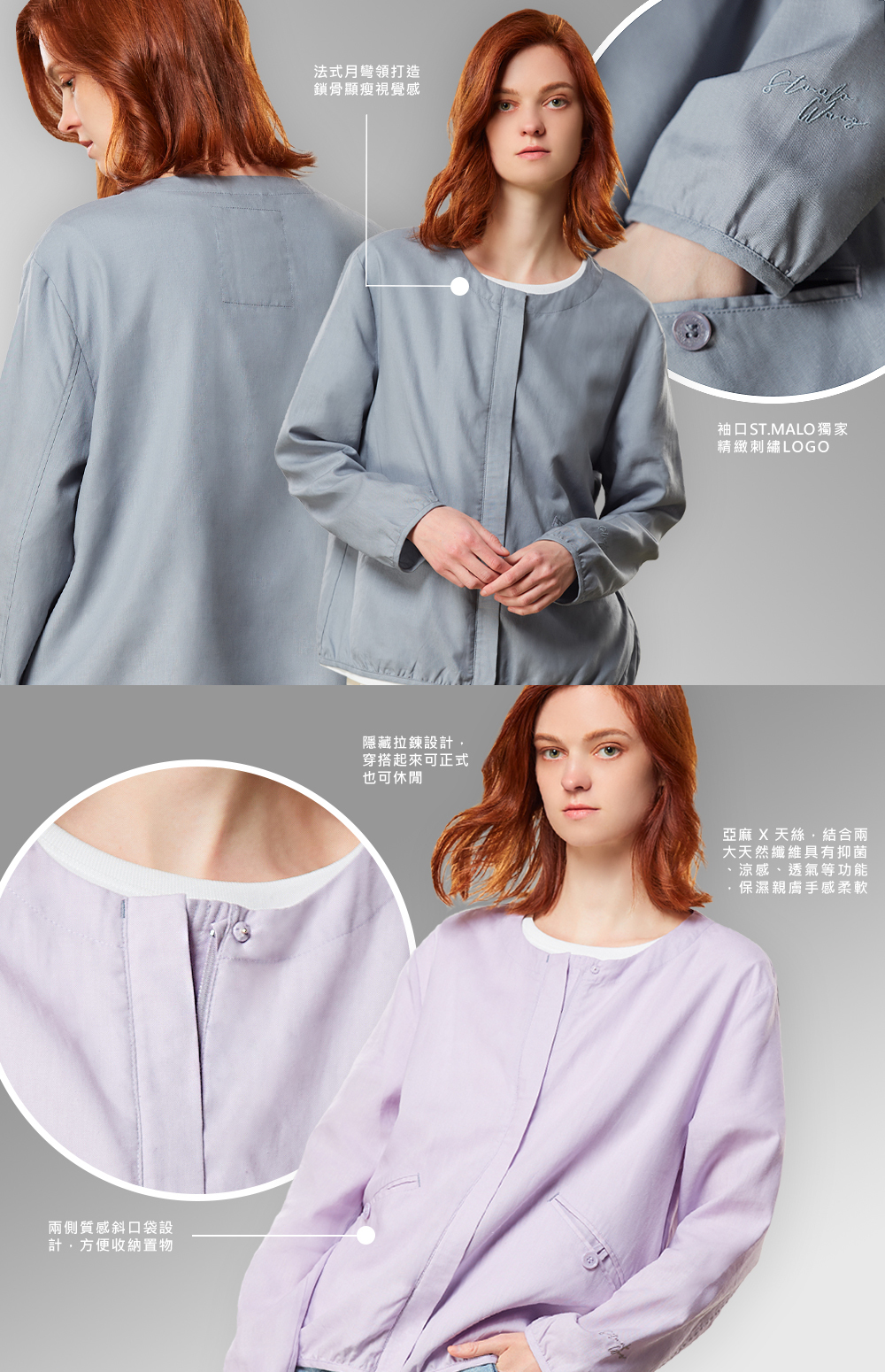 ▪ 低調質感設計:袖口精緻品牌刺繡、珍珠母貝釦綴『ST.MALO』字樣