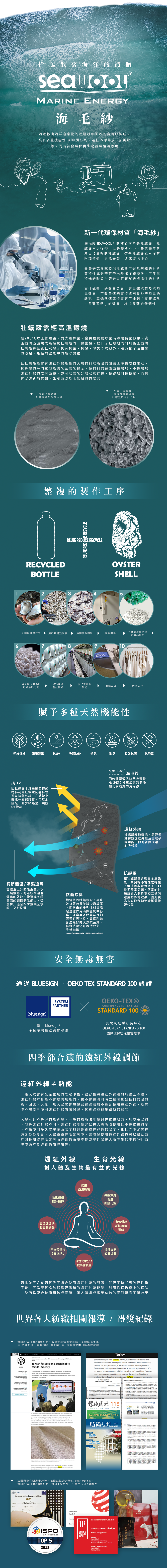 來自海洋的天然純淨-SEAWOOL,選自黃金牡蠣殼萃取纖維,絲綢般輕柔光滑觸感