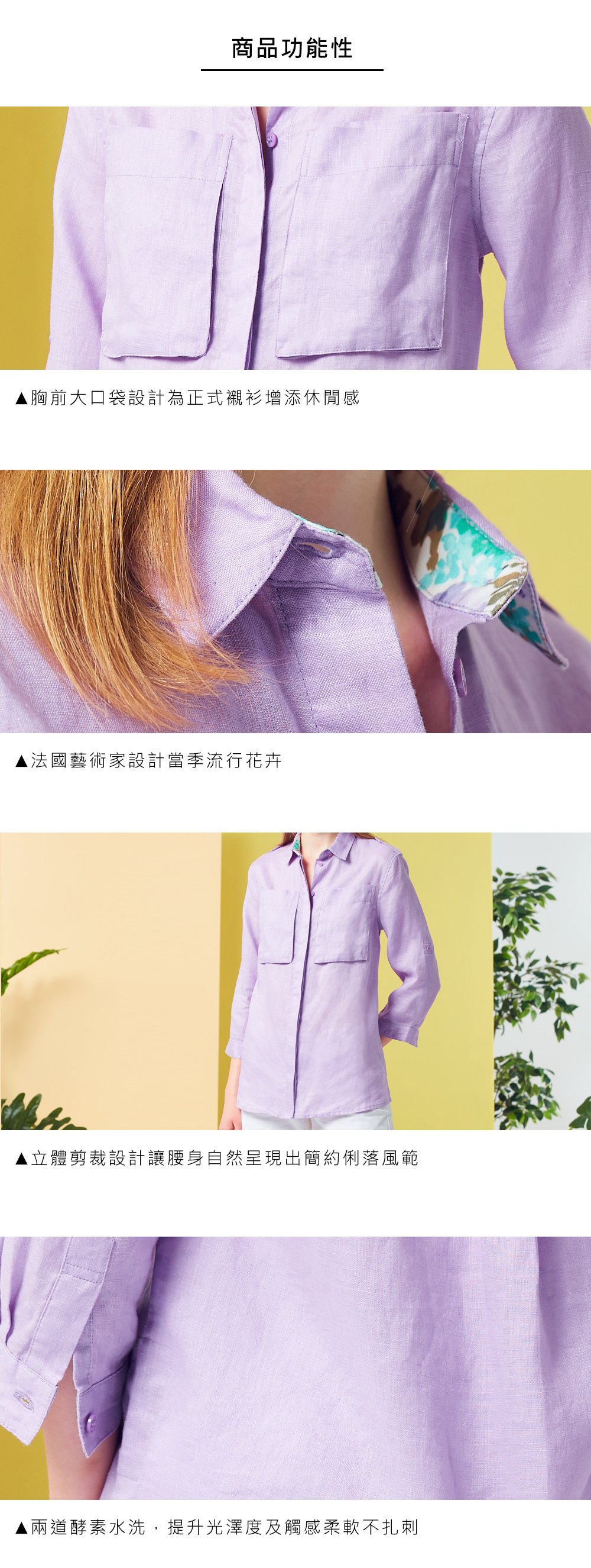 ▪ 胸前經典大口袋、七分袖長設計為正式的襯衫版型添加了些微休閒感,立體剪裁設計讓腰身自然呈現出簡約俐落風範。