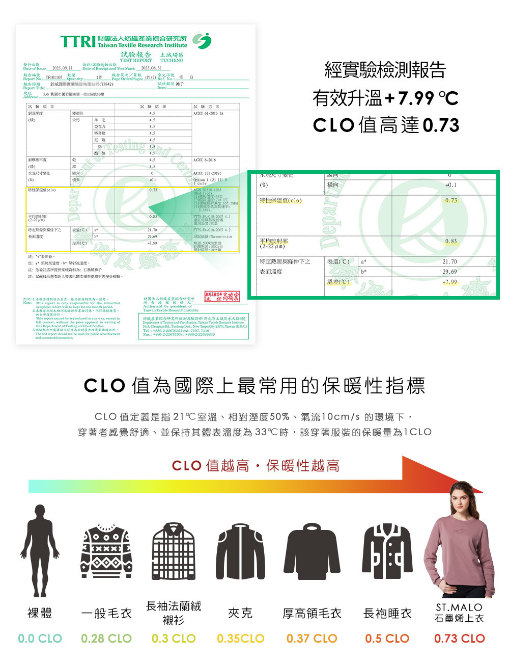 ▪ CLO值0.73,升溫7.99度,蓄熱速度快、保暖力滿分