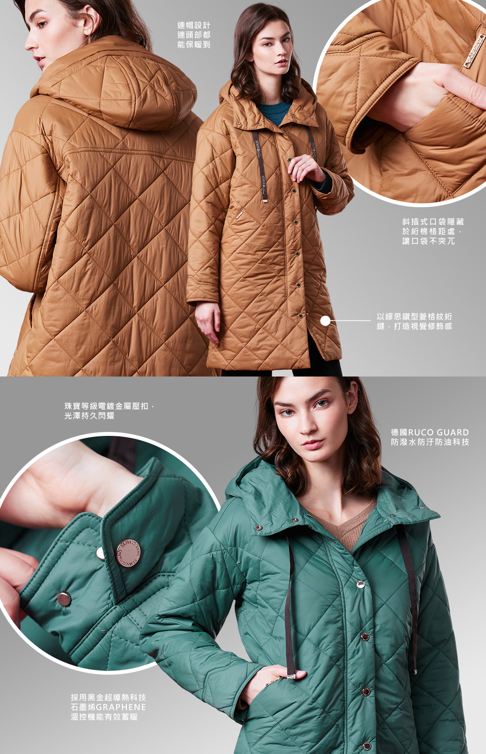 ▪斜插式口袋隱藏於绗棉格距處,讓口袋不突兀
