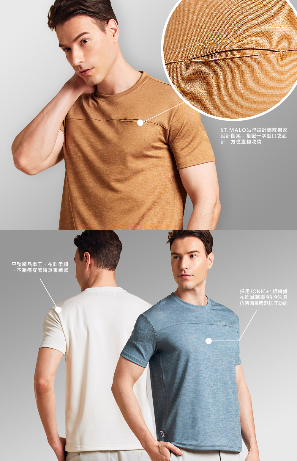 ST.MALO男款獨家胸前一字領口袋設計,置物收納好方便!