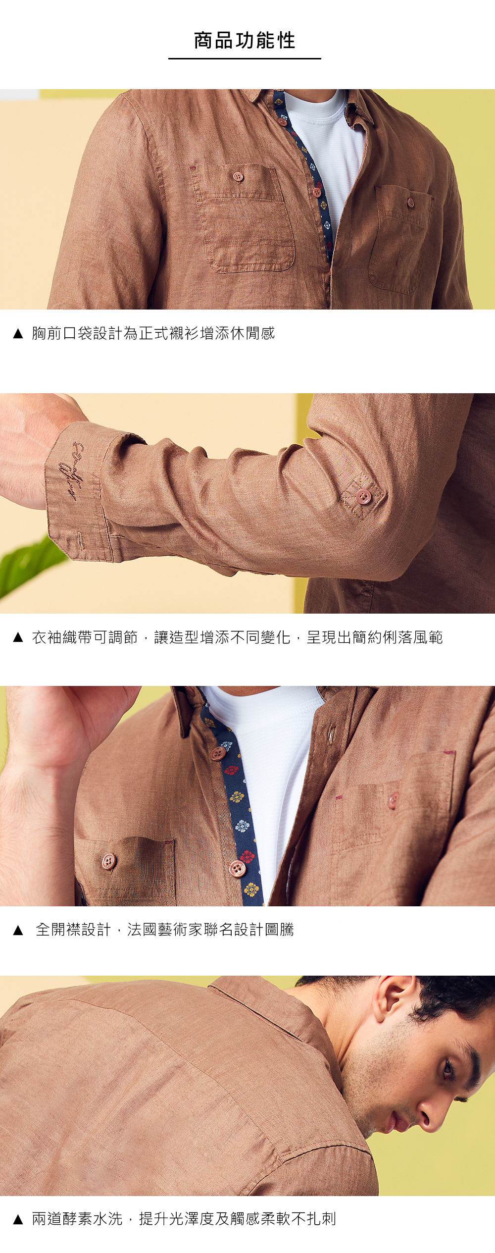 ▪ 14道工序,作工繁複;兩道酵素水洗,提升光澤度及觸感柔軟不扎刺