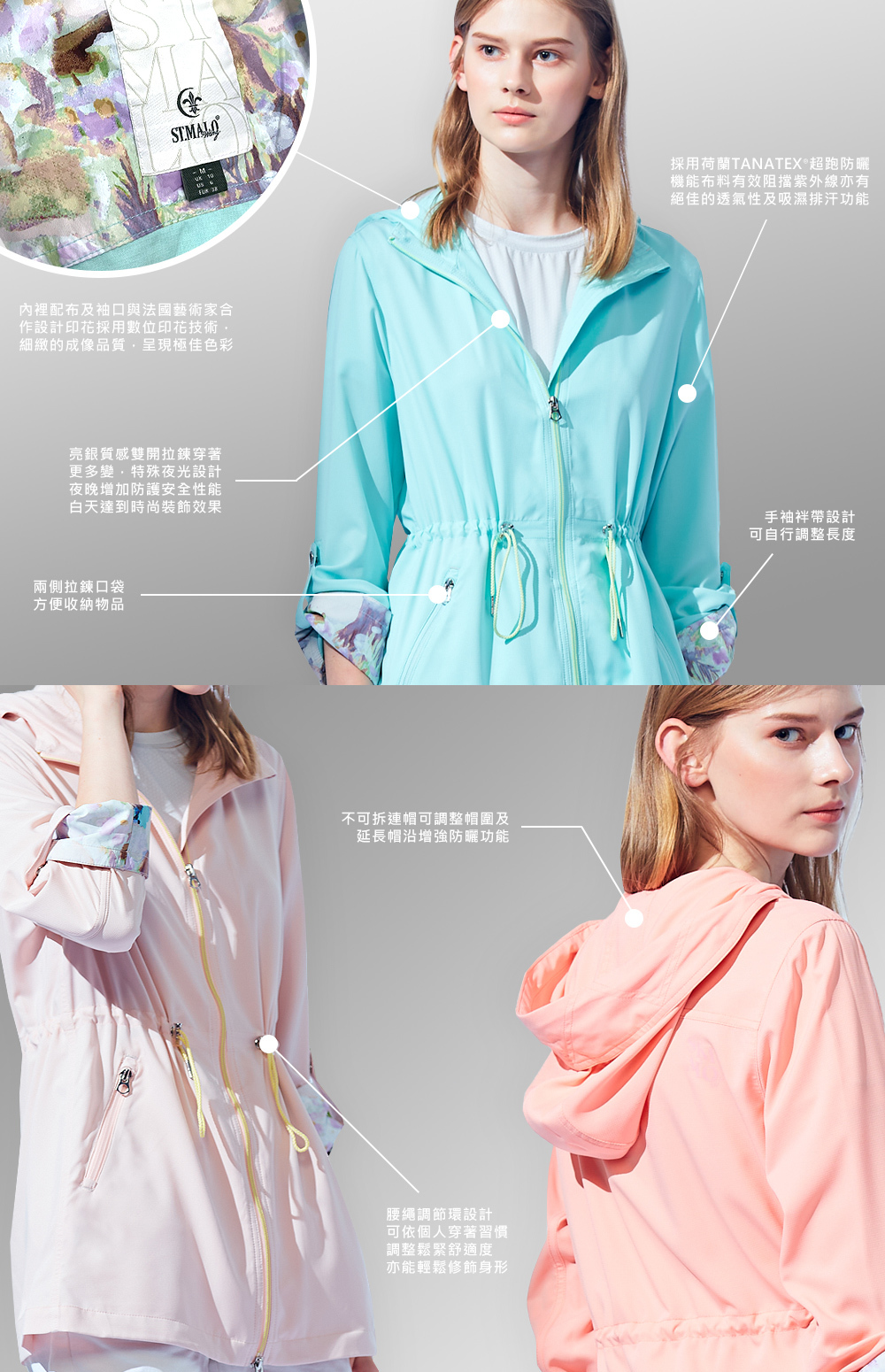 【惜福品】荷蘭TANATEX UPF50+超跑抗曬漾采花繪風衣剪裁防曬外套-2105WJ-薄荷綠