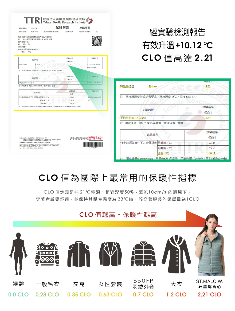 ▪ 黑金石墨烯原紗搭載9大機能,強效蓄熱,CLO值2.21,實驗證實升溫10.12度