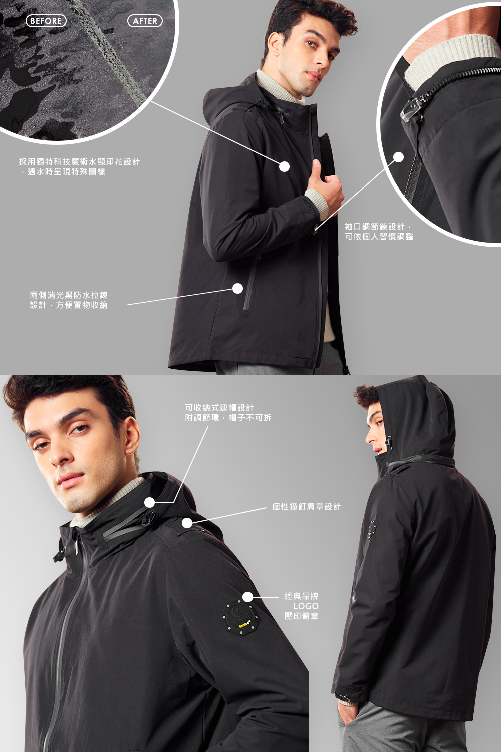 ✔首款 IONIC+軍規抗菌布料結合防風防水外套,殺菌率99.9%,避免冬日細菌滋生。