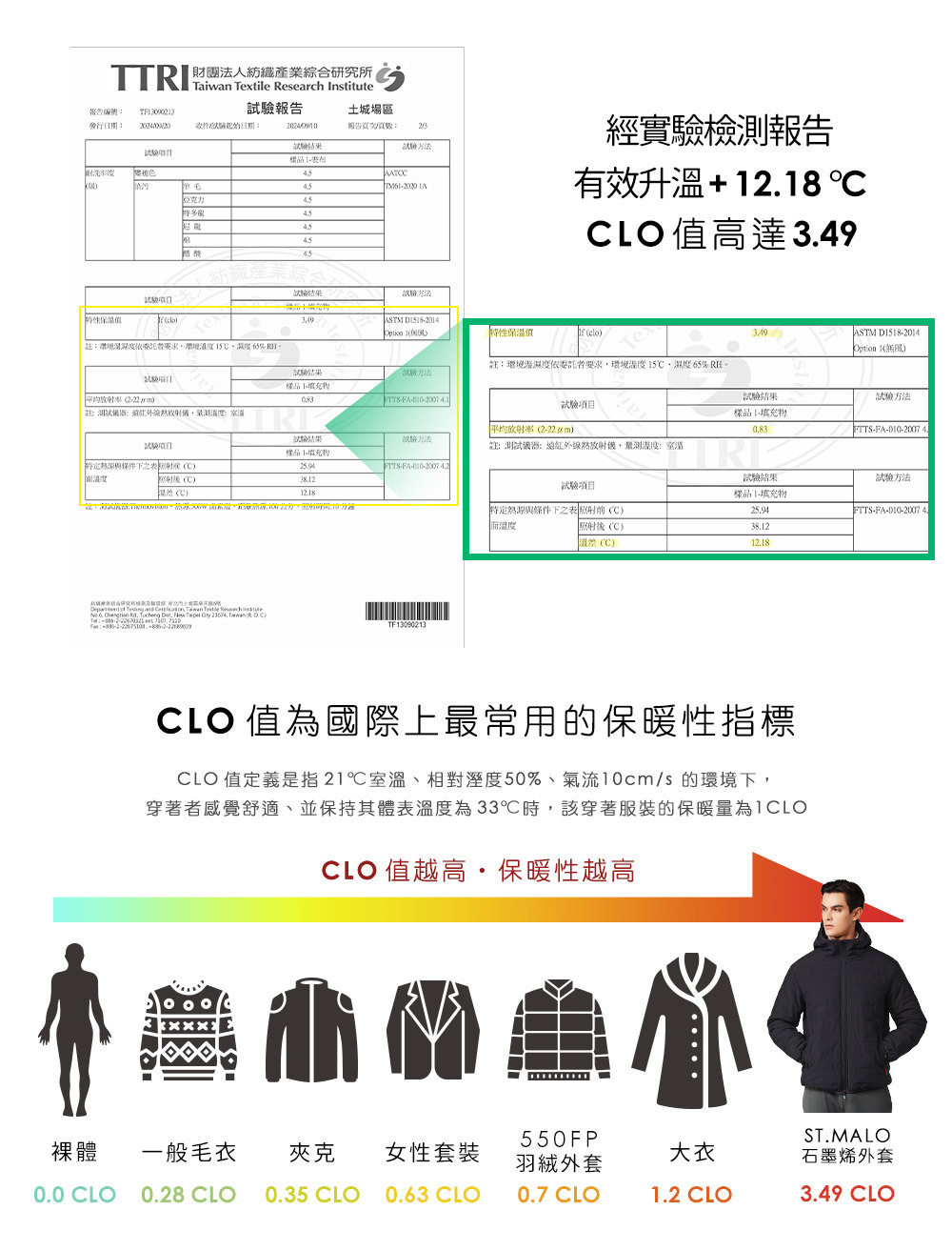 ▪黑金石墨烯原紗搭載9大機能,強效蓄熱,CLO值3.49,實驗證實升溫12.18度