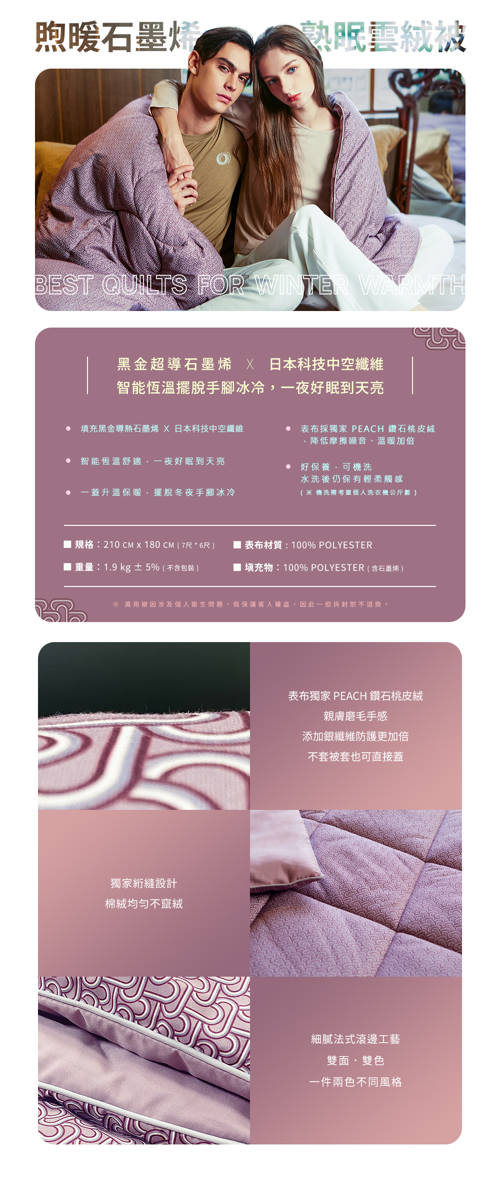煦暖石墨烯熟眠雲絨被-2592DT-古典玫瑰粉